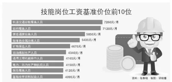 其中排名前三位的分别是轨道交通运输服务人员7260元/月、银行服务人员7120元/月、信息通信业务人员5850元/月;
