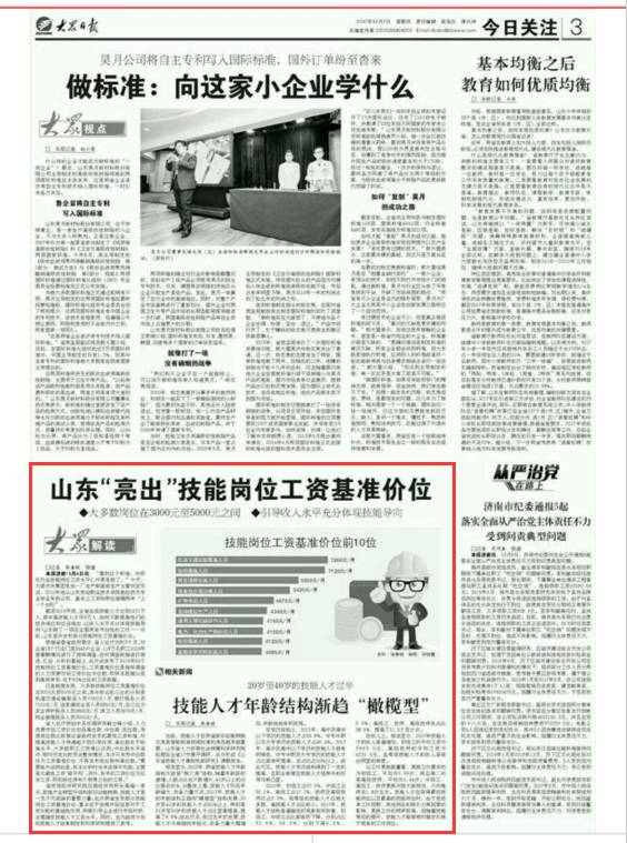 12月7日,《大众日报》刊发文章《山东“亮出”技能岗位工资基准价位》,报道山东首次发布技能岗位工资基准价位,引导收入水平充分体现技能导向,报道全文梳理如下: